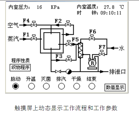 其它元件組成一套完整的控制系統(tǒng),一般共配備了五套滅菌程序(織物程序﹑器械程序﹑液體程序﹑BD實驗、自選程序),您可以根據(jù)需要選擇應(yīng)用,也可以根據(jù)實際情況改變工作參數(shù)。觸摸屏可實時顯示程序運行的每一過程狀態(tài)。